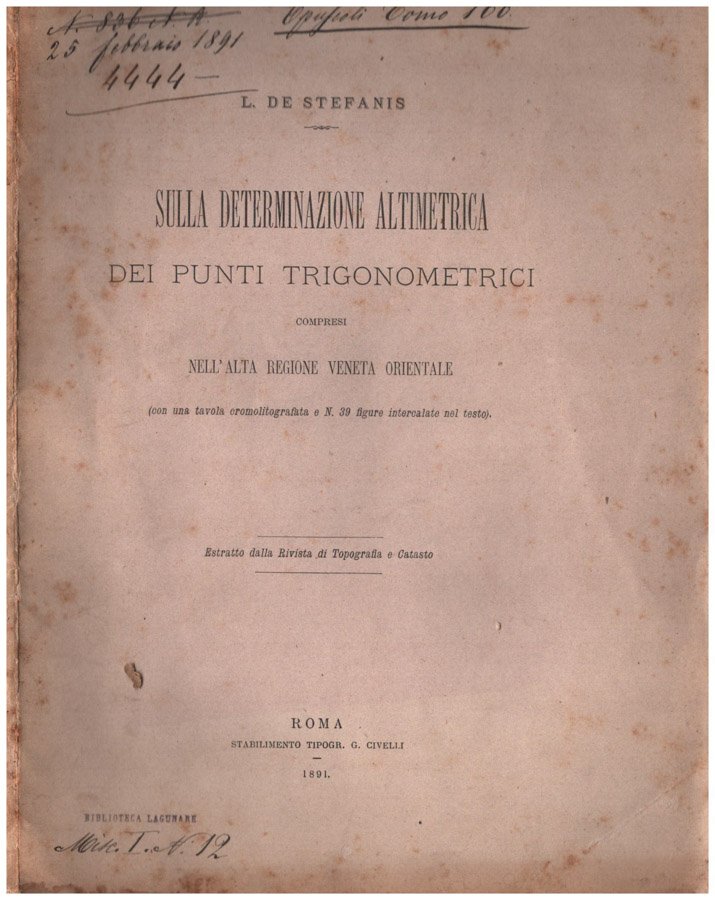 Estratto della Rivista di Tipografia e Catasto. Brossura editoriale in cartoncino morbido ombrato da veli di polvere, con macchiolie di umidità ai piatti, punte e cuffie sgualcite, abarasioni al dorso con strappi e piccole mancanze. Pagine interne ingiallite causa tempo perfettamente godibili. Testo ricco di numerose tavole e tabelle in bianco e nero. Buono lo stato generale di consevazione. Il volume potrebbe contenere timbri ed etichette dell'istituto Veneto, regolarmente acquisito dalla nostra libreria. Numero pagine 53