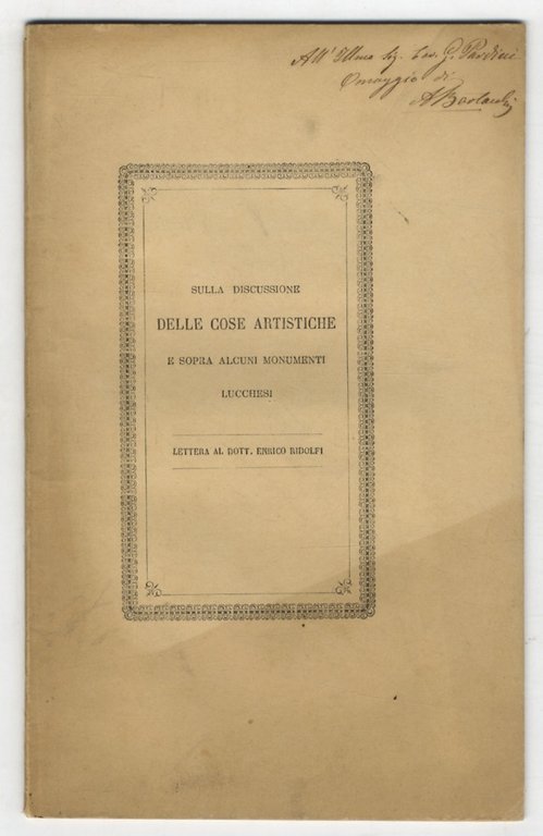 Sulla discussione delle cose artistiche e sopra alcuni monumenti lucchesi. Lettera al dott. Enrico Ridolfi.