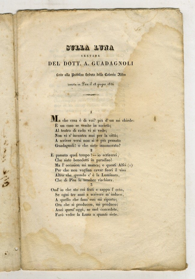 Sulla luna. Sestine del dott. A. Guadagnoli d'Arezzo.