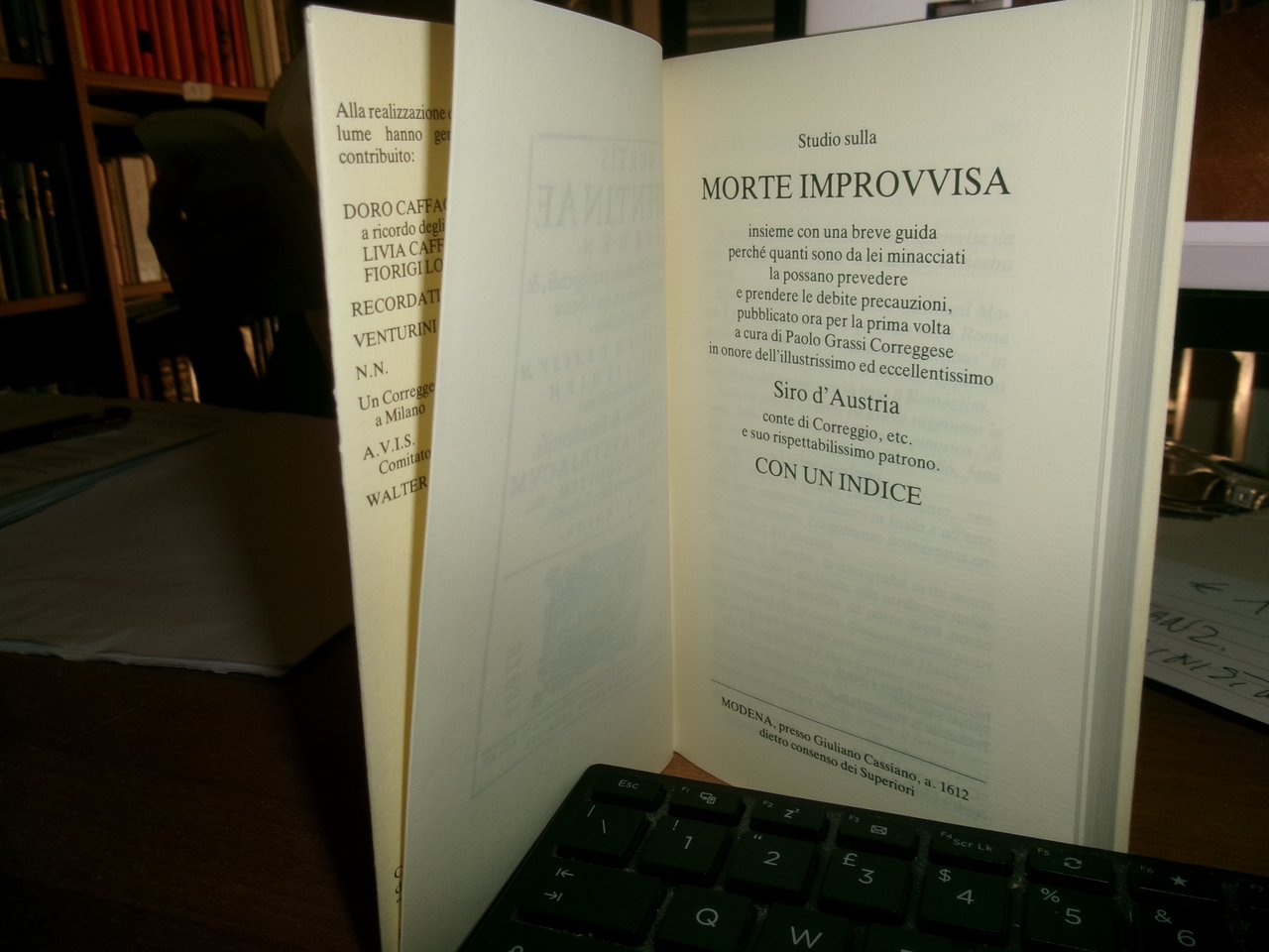 PAOLO GRASSI. Sulla morte improvvisa. A cura di Spalato Signorelli. Traduzione di Tebaldo Fabbri. Modena Presso Ruggeri Grafiche, 1987. In-16°, cart. edit. con risvolti. xxxiv, 160 pp. Come nuovo. 2 copie a euro 18 ognuna. Uff. stanz. sinistra III - 3