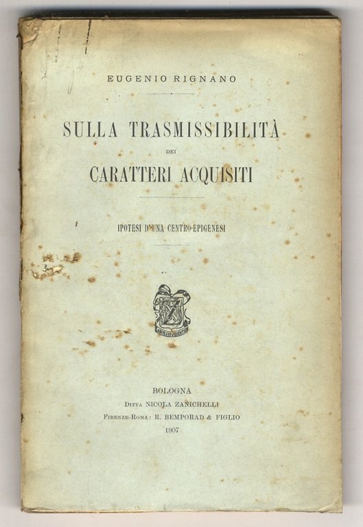 Sulla trasmissibilità dei caratteri acquisiti. Ipotesi d'una centro-epigenesi.