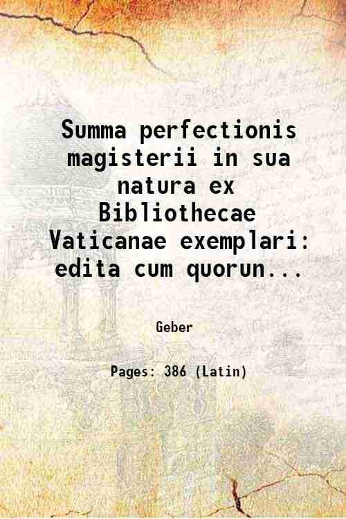 Summa perfectionis magisterii in sua natura ex Bibliothecae Vaticanae exemplari | Libri antichi e moderni | Geber