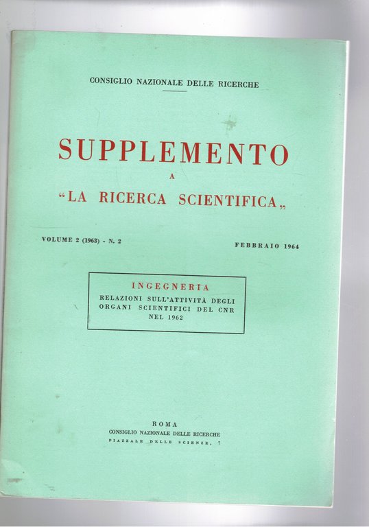 Supplemento a la ricerca scientifica vol. 2° n. 2 del 1964. Ingegneria. Relazione sull'attività degli organi scientifici del CNR nel 1962.