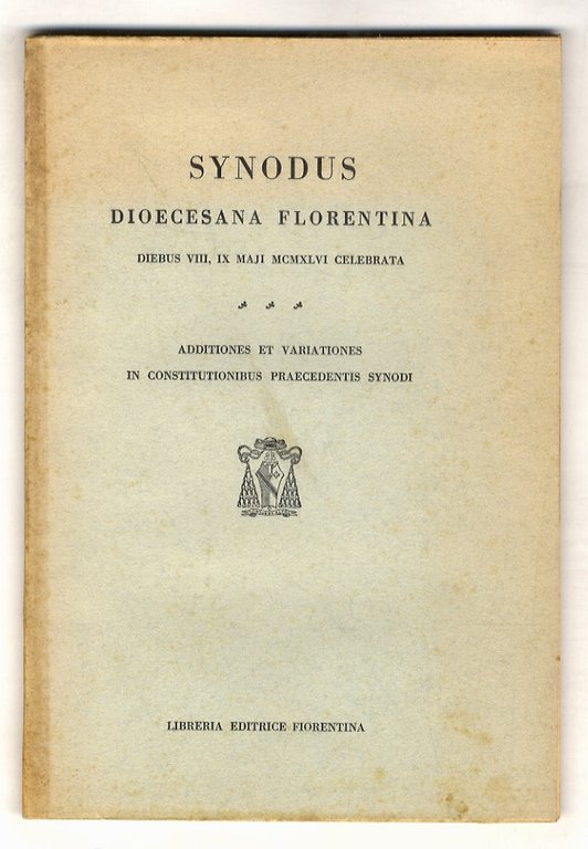 SYNODUS Dioecesana Florentina. Diebus VIII, IX Maji MCMXLVI celebrata. Additiones et variationes in constitutionibus praecedentis synodi.