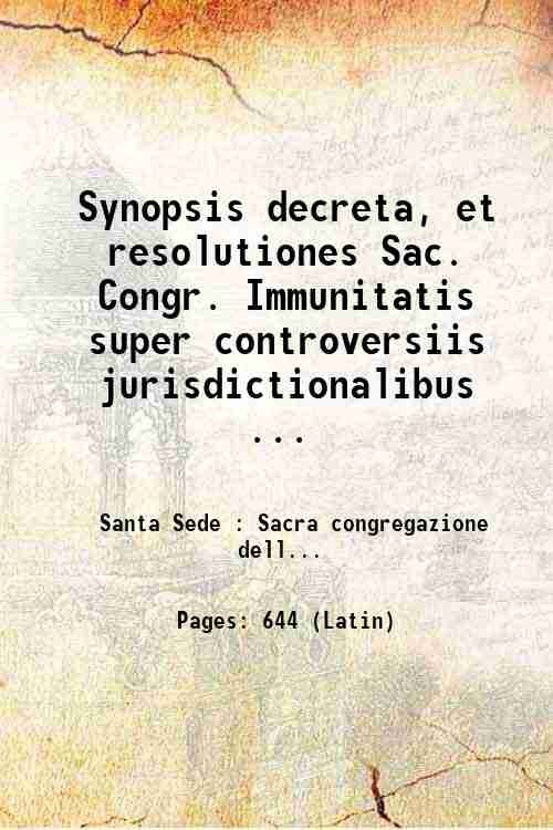Synopsis decreta, et resolutiones Sac. Congr. Immunitatis super controversiis jurisdictionalibus complectens, studio . Petri Andreae Riccii . collecta, & digesta, . 1720 | Libri antichi e moderni | Santa Sede : Sacra Congregazione Dell'Immunit‡ Ecclesiastica