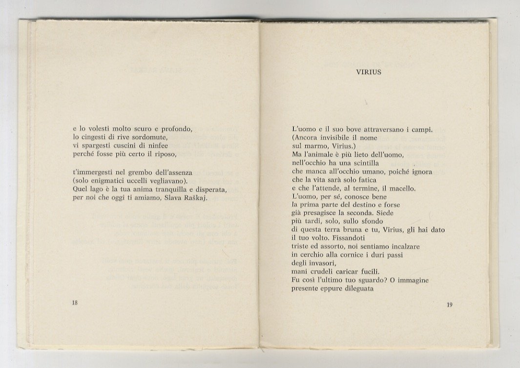 Vicenza, La Locusta, 1976, in-16, brossura editoriale con sovraccoperta in carta velina semitrasparente, pp. 61, [3]. Prima edizione. Ex-libris. Perfette condizioni.