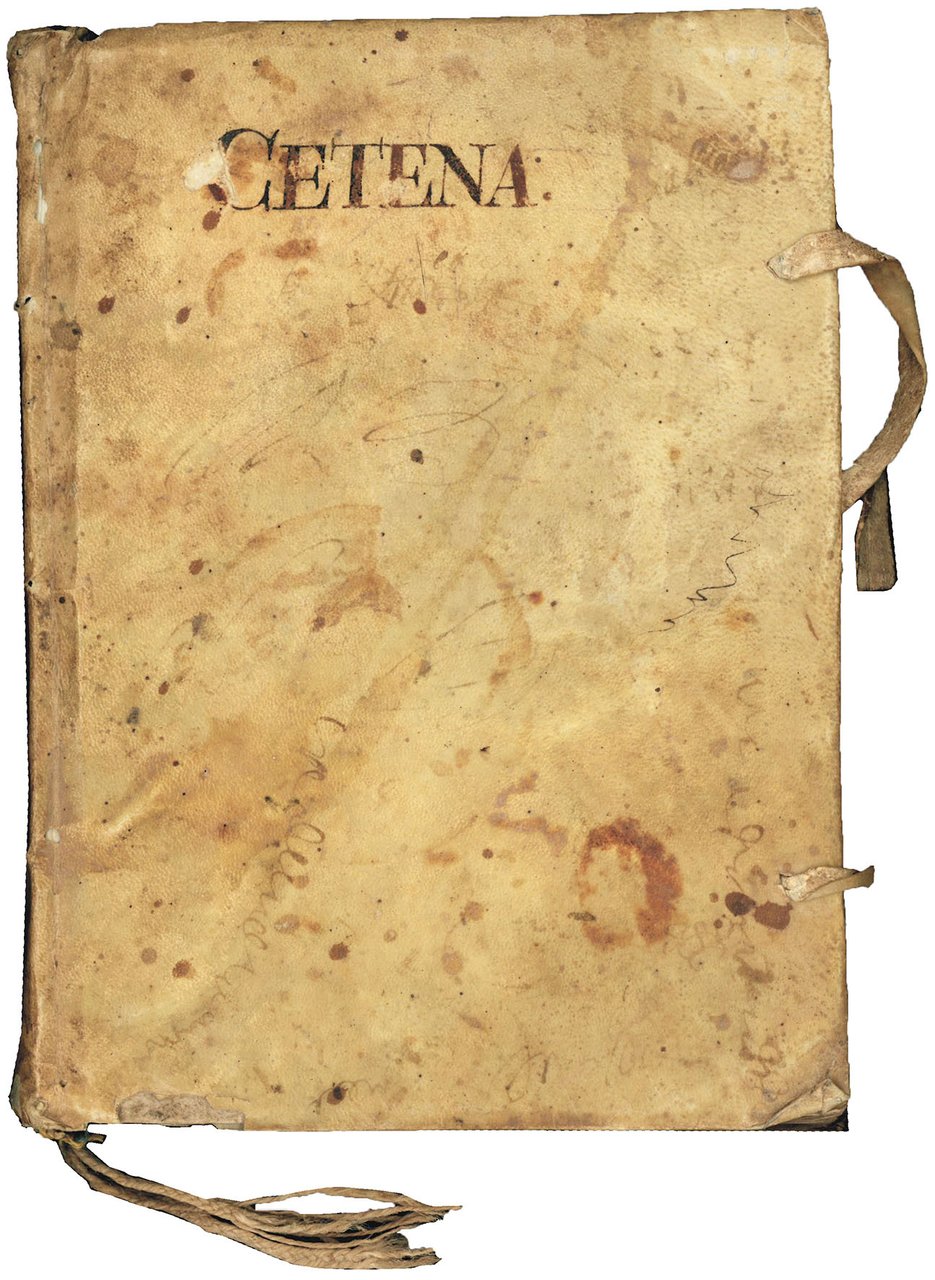 In 4to (mm. 226x168). Pp. 160. Segnatura: A-V4. Armi medicee impresse in legno al titolo. Legatura originale in piena pergamena rigida con legacci e duplice segnalibro in corda, la parola “Cetena” vergata in alto al piatto anteriore (macchiata, piccole mancanze e diverse prove di penna al piatto posteriore). Nota di possesso al contropiatto “Galardo Taddei”. Alone al margine interno delle prime carte, fioriture sparse, alcuni fascicoli un po' bruniti in fine, nel complesso ottima copia genuina.