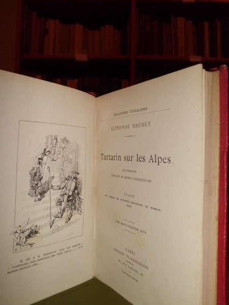 Daudet, Alphonse. Paris, E. Flammarion, s.d. (fine '800). Tartarin sur les Alpes. Nouveaux exploits du Heros Tarasconnais. Illustré par Aranda, De Beaumont, Montenard, De Myrbach, Rossi. In - 16°, tela rossa coeva. (12), 365, (7) pp. con numerose illustrazioni n.t. Uff. scat.7