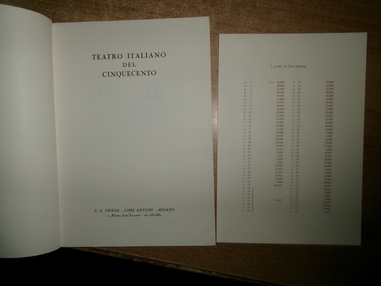 TEATRO Italiano del Cinquecento. CARLO ALBERTO CHIESA s.d. anni '50