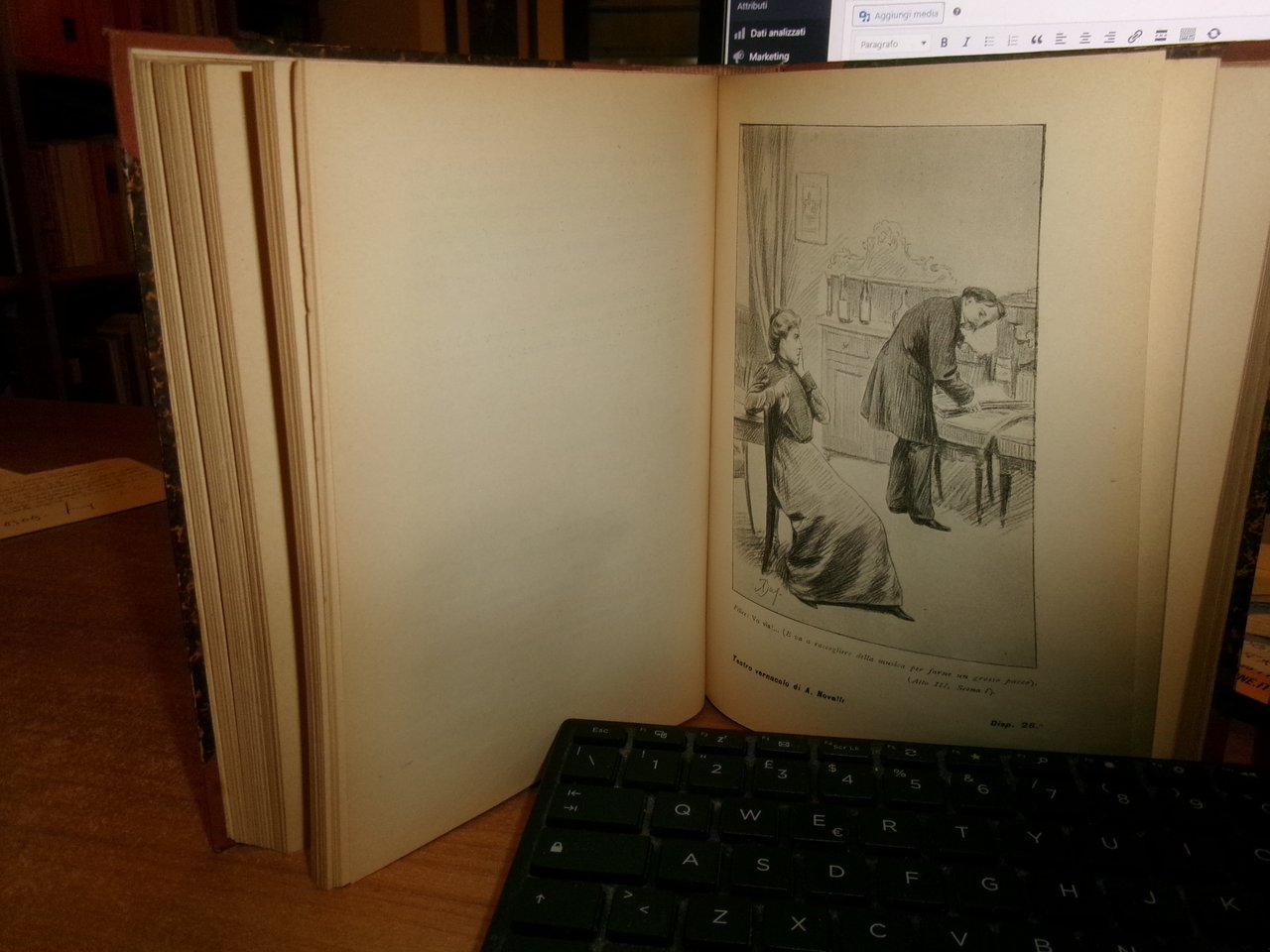 In-8°, m. tela. 415 pp. con illustrazioni a piena pagina. L' opera uscì a dispense. Questo secondo volume contiene i seguenti lavori: 1. Una scossa ondulatoria. 2. La macchina Casimir. 3. Dopo. 4. Il peccato. 5. I morti. 6. La signorina della quarta pagina. 7. Vecchi eroi. In ottimo stato di conservazione. Neg. mob. 4