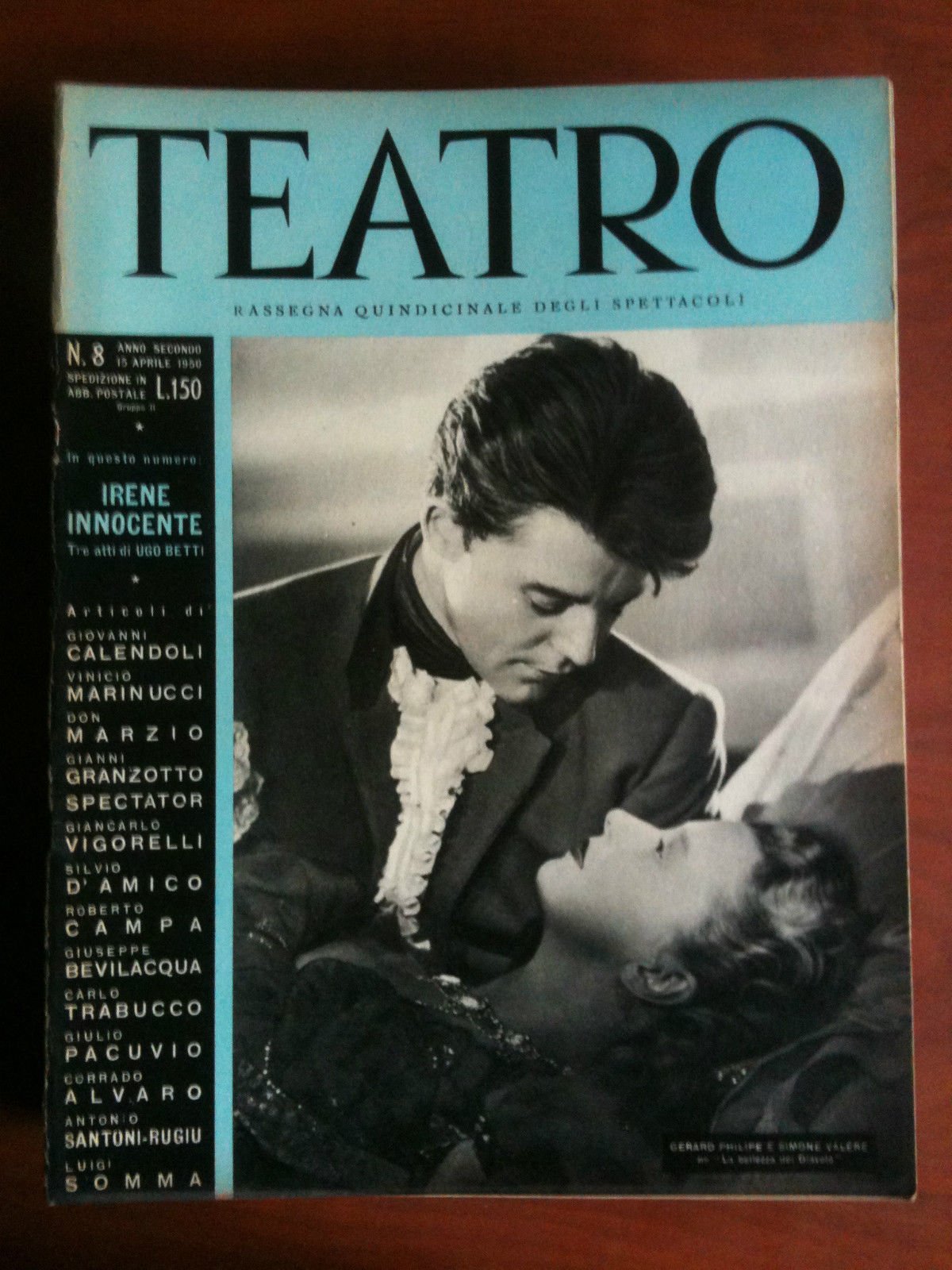 TEATRO Rassegna quindicinale degli spettacolin^ 8 Anno II - 15 Aprile 1950Copertina: Gerard Philipe e Simone ValèreIn buone condizioni (155 g)E5593