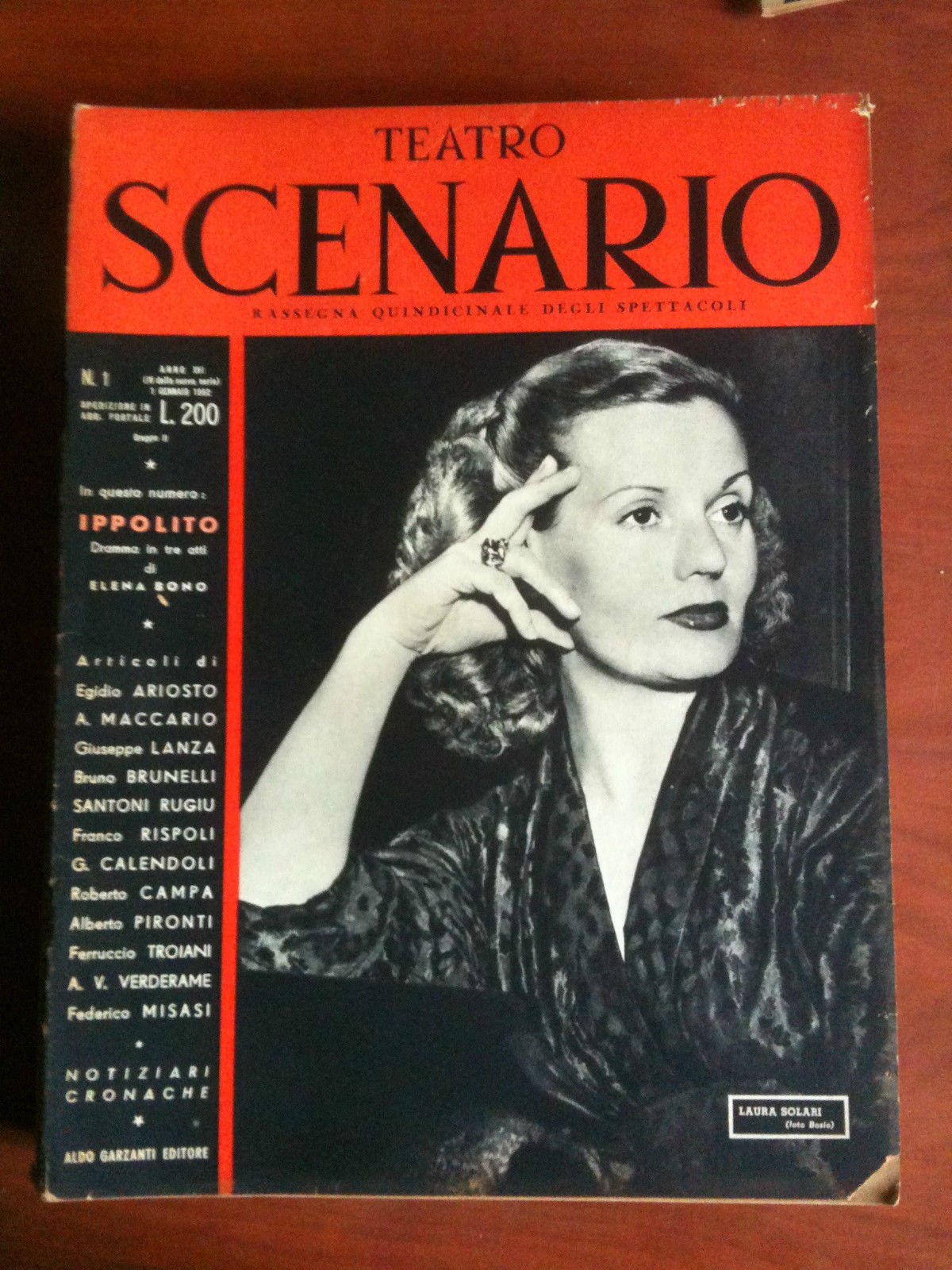 TEATRO SCENARIORassegna quindicinale degli spettacolin^ 1 Anno IV - 1 Gennaio 1952Copertina: Laura SolariIn buone condizioni (152 g)E5580