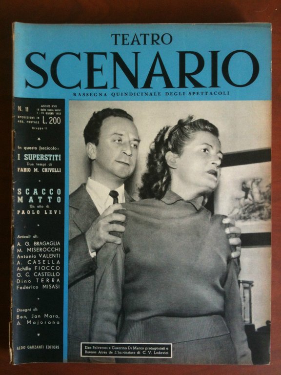 TEATRO SCENARIORassegna quindicinale degli spettacoliCopertina: Elsa Polverosi e Guerrino Di marco protagonisti a Buenos Aires d L'Incrinatura di C.V. LodoviciIn buone condizioni salvo dorso danneggiato(127 g)E8361