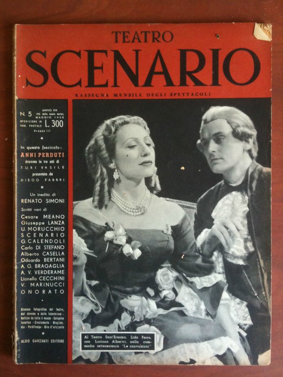 TEATRO SCENARIORassegna quindicinale degli spettacoliCopertina: Al Teatro Sant'Erasmo, Lida Ferro con Luciano Alberici, nella commedia settecentesca "Le convulsioni"In buone condizioni salvo dorso danneggiato(178 g)E8365