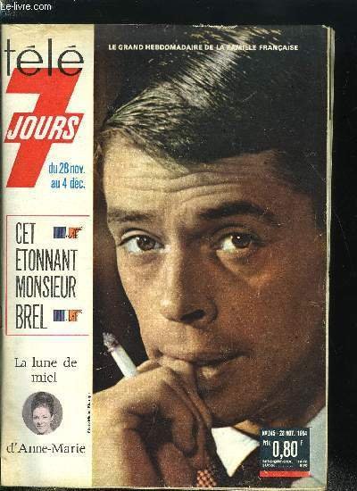 Télé 7 jours n° 245 - Contre la publicité a la télévision, Les confidences de B.B. sur l'amour, la famille, la vie sociale et le cinéma, Le fils de famille, Jacques Brel n'a qu'une hantise : redevenir un bourgeois, Albert Rémy est rentré de Hollywood