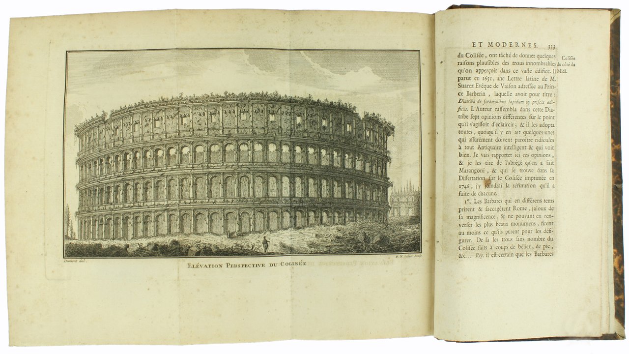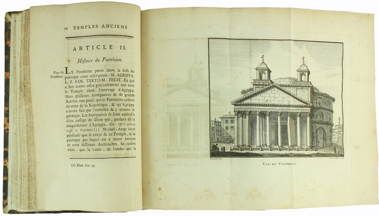 (Codice AN/3107) 2 parties en 1 vol. in-8 de XVI-347(3) pp. (Pagination continue) Edition originale illustré de 7 planches dépliantes gravées sur cuivre: le Panthéon, sa coupe, l'Eglise Saint Paul de Rome, plan de Sainte Sophie de Constantinople, plan de Saint Pierre de Rome, le Colysée. Reliure demi basane du temps, dos très frotté, mors fendus. Titre doré, tranches poivrées. Intérieur en très bon état. ~~~ SPEDIZIONE IN ITALIA SEMPRE TRACCIATA