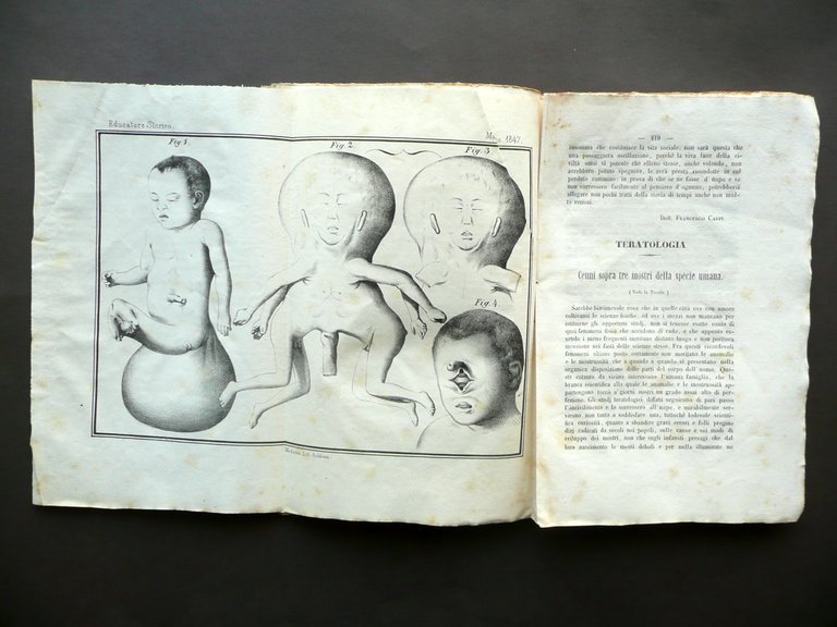 Teratologia Tre Mostri della Specie Umana Gaddi Tavola L'Educatore Storico 1847