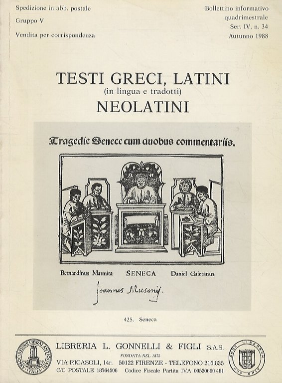 Testi greci, latini (in lingua e tradotti), neolatini.