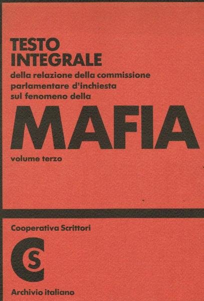 3 TOMI CM. 17X23.5, LEGATO IN BROSSURA A DUE COLORI, PAGINE COMPLESSIVE LXXXIII - 2935, N. 1. PODEROSA EDIZIONE NELLA COLLANA "ARCHIVIO ITALIANO", EDIZIONE REPRINT CON LE TESTIMONIANZE DELL'ON. FRANCESCO CATTANEI, DELL'ON LIBERO DELLA BRIOTTA, E DELL'ON. PIO LA TORRE. LA RELAZIONE E GLI ATTI PARLAMENTARI SONO STATI PUBBLICATI DALLA V LEGISLATURA DEL PARLAMENTO. OTTIMI ESEMPLARI