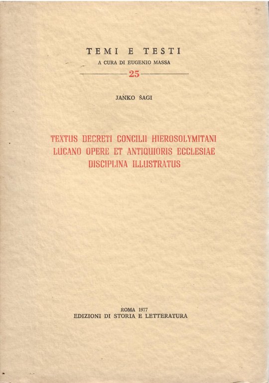 TEXTUS DECRETI CONCILII HIEROSOLYNITANI LUCANO OPERE ET ANTIQUIORIS ECCLESIAE DISCIPLINA ILLUSTRATUS