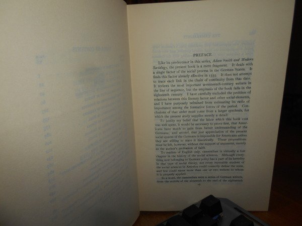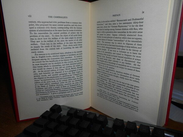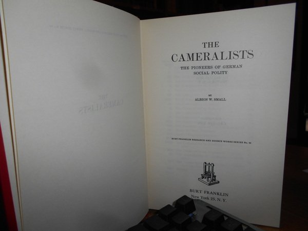 ALBION W. SMALL. New York, Burt Franklin, senza data. The Cameralists. The Pioneers of Germany Social Polity. In-8°, tela edit. rossa con titolo in oro al dorso. xxv, 606 pp. In ottimo stato di conservazione. Uff. B - III - 4
