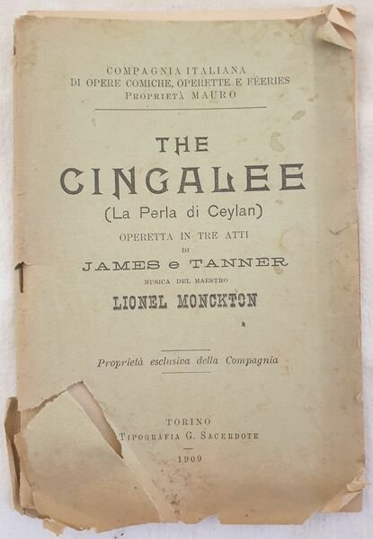 THE CINGALEE (LA PERLA DI CEYLAN) OPERETTA IN TRE ATTI DI JAMES E TANNER MUSICA DEL MAESTRO LIONEL MONCKTON