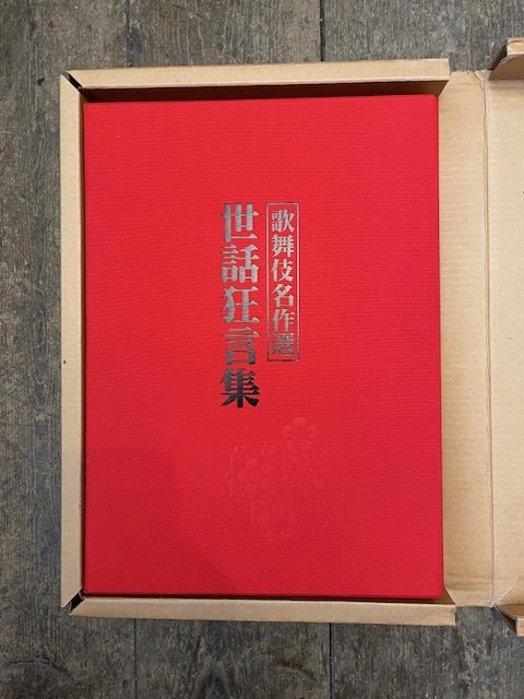 1 volume, pagine non numerate, molte ill. a colori; 37 cm. Tela edit. viola, cofanetto in tela rossa e custodia in cartone. Come nuovo. Testo in giapponese e in inglese. Sponsorizzato dalla Traditional Kabuki Preservation Society