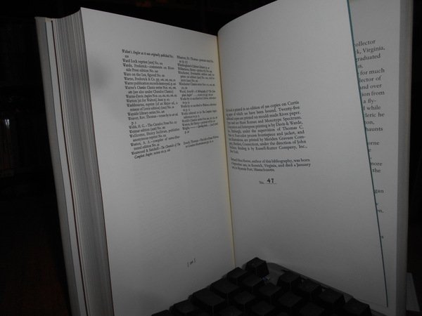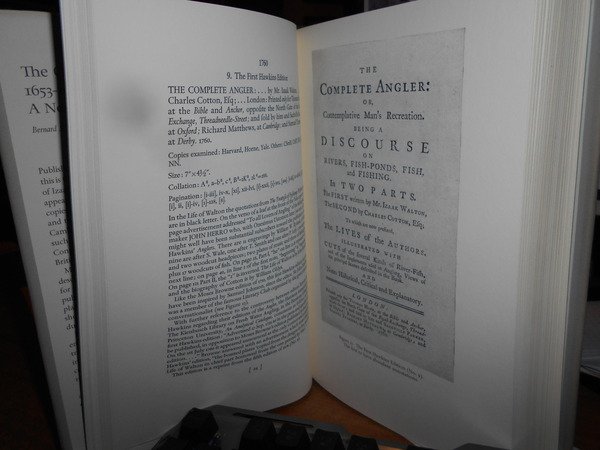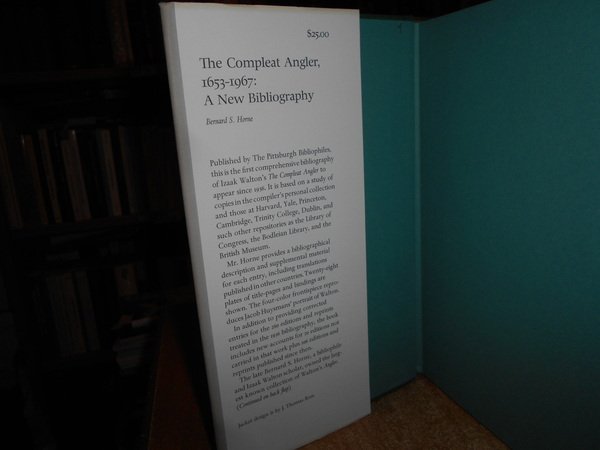 BERNARD S. HORNE. Pittsburgh, The Pittsburgh Bibliophiles, 1970. The Compleat Angler 1653-1967. A New Bibliography. In-8°, tela verde con titolo in oro al dorso, sovracopertina ill. a col. xx, 350 pp. con ritratto a colori applicato protetto da velina trasparente e 18 tavole in bianco e nero riproducenti frontespizi di testi antichi. In ottimo stato di conservazione. Uff. A - I - 6