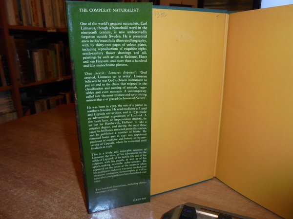 WILFRID BLUNT. London, Collins, 1971. The Compleat Naturalist. A Life of Linnaeus. In-8°, tela verde con titolo in oro al dorso, sovracopertina ill.a col. 256 pp. con numerose illustrazioni a colori e in bianco e nero anche a piena pagina. Come nuovo. Uff. C - III - 7