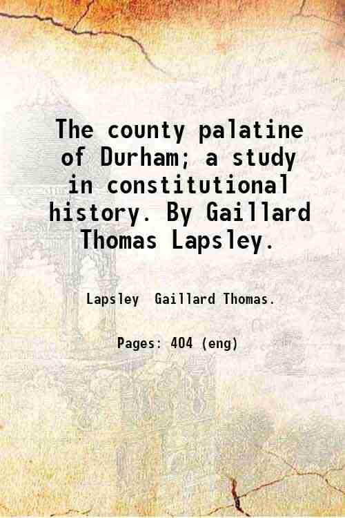 The county palatine of Durham; a study in constitutional history. By Gaillard Thomas Lapsley. 1900