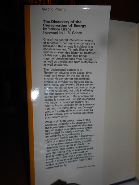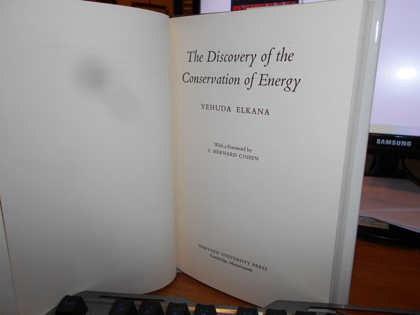 YEHUDA ELKANA. Cambridge Massachusetts, Harvard University Press, 1975. The Discovery of the Conservation of Energy. Science owes more to the steam engine than the steam to science Anon. In-8°, tela edit. con titolo argentato al dorso, sovracopertina. xiv, 213 pp. In ottimo stato di conservazione. Uff. C - I - 4
