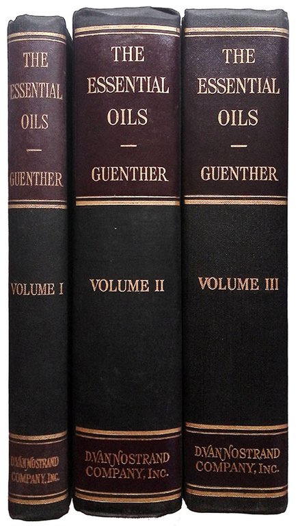 Testo in inglese. Tre volumi: Vol. I History, Origin in Plants, Production, Analysis; Vol. II The contituents of essential oils; Vol. III Individual essential oils of the plant families Rutaceae and Labiatae. XVI-427 + XIII-852 + XVI-777 p., f.to cm 23,5x16, copertina rigida, illustrazioni in b/n. Ottime condizioni.