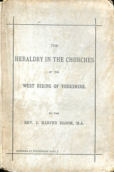 No marks or inscriptions. No creasing to covers. A clean very tight copy with unmarked well foxed boards, foxed end papers and well-rubbed edges and corners. Tightly bound but with spine cover strip missing. Untrimmed dusty page edges. 127pp. Part II of the study describing heraldic church ornaments and devices covering the Wapentake of Barkston Ash which includes the parishes of Birkin, Bramham cum Oglethorpe, Brayton, Drax, Kirk Fenton, Ledsham, Monk Fryston, Saxton with Scarthingwell and Sherburn-in-Elmet and parts of Brotherton, Kirkby Wharfe, Ryther, Snaith and Tadcaster (cf Wikipedia). Extremely scarce.