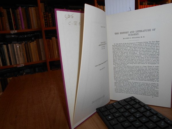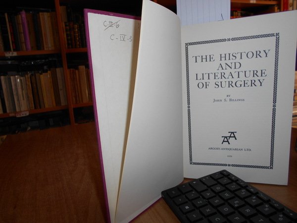 JOHN S. BILLINGS. United States of America, Argosy Antiquarian, 1970. The History and Literature of Surgery. In.8°, tela bordeaux con titolo al dorso. 132, (7) pp. di indice. Ottimo stato. Uff. C . IV - 3