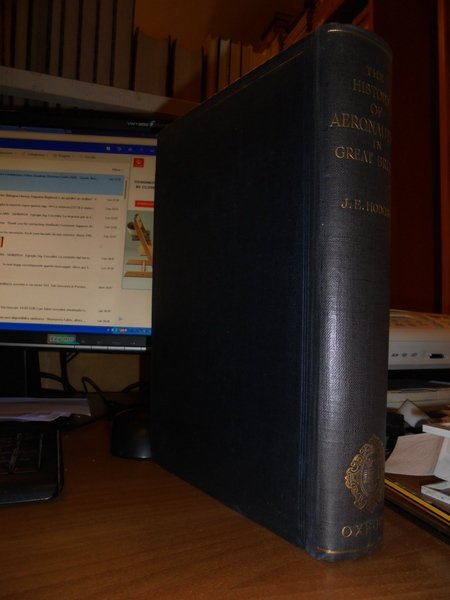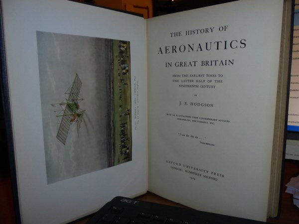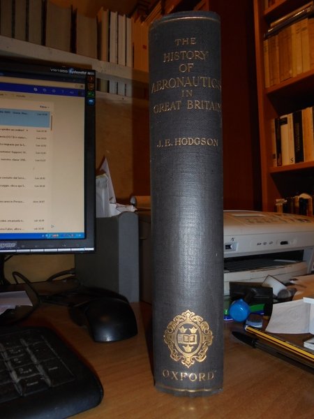 J.E. HODGSON. Oxford University Press, 1924. The History of AERONAUCTIS in Great Britain from the earliest times to the latter half of the nineteenth century. Edizione originale. In-8° grande, tela edit. con fregi e titolo in oro al dorso, taglio superiore dorato. xxii, 436 pp. With 150 illustrations from contemporany sources chronology, bibliography, etc. Bellissimo esemplare stampata in 1000 es. Uff. C - II - 4