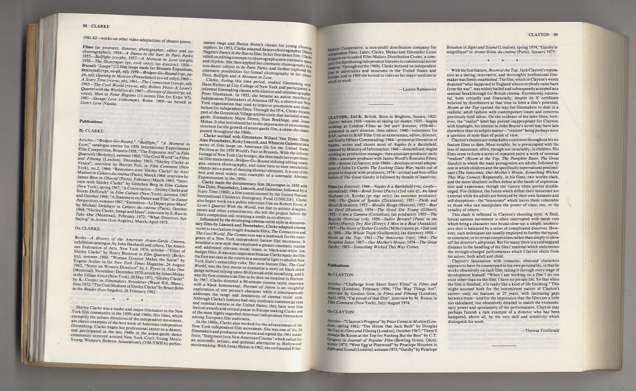 The International Dictionary of Films and Filmmakers: volume 2: Directors/Filmmakers. Editor: Christpher Lyon. Assistant Editor: Susan Doll.