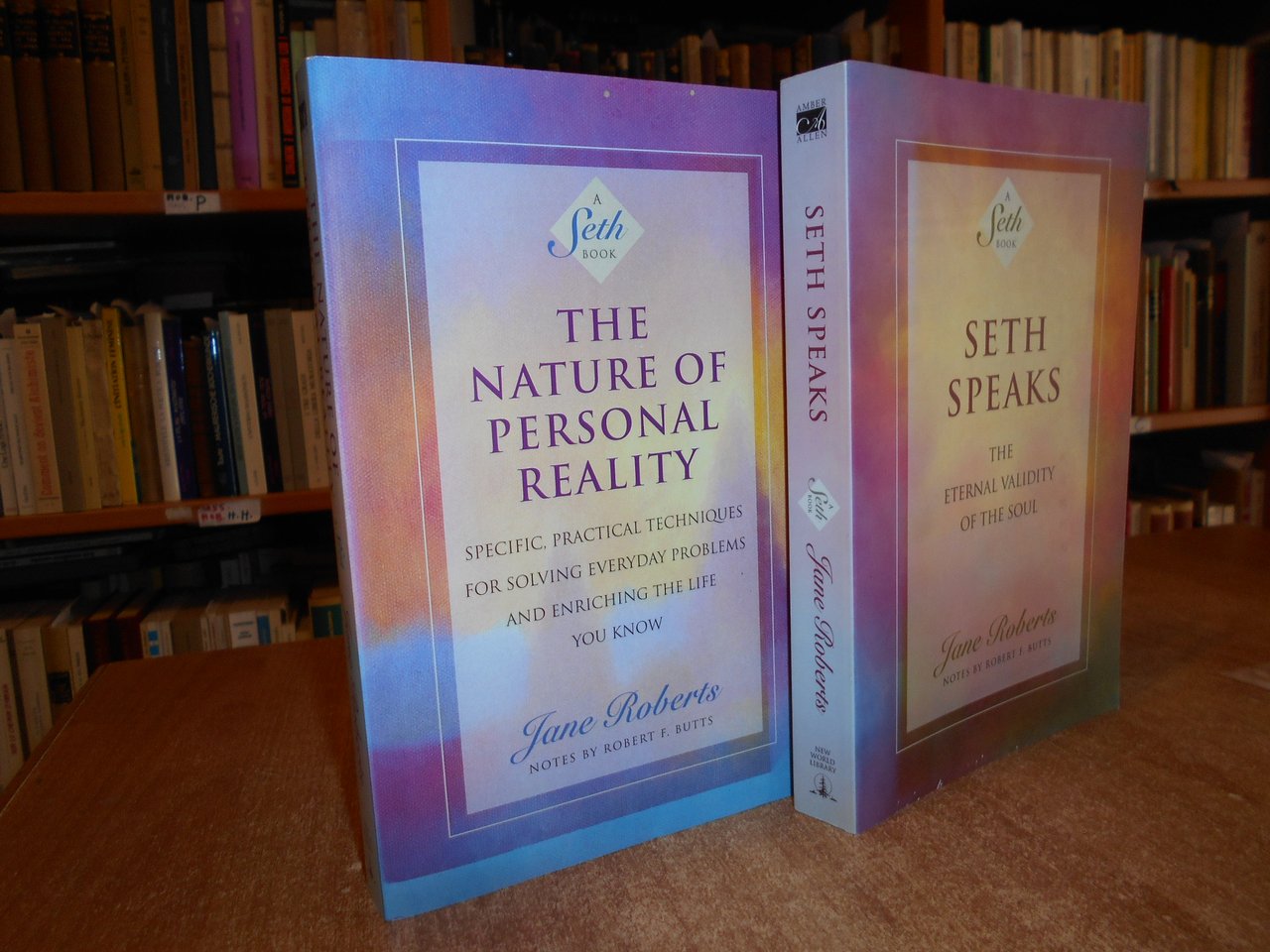 JANE ROBERTS. U.S.A., New World Library, 1999. The Nature of Personal Reality. Specific, practical techniques for solving everyday problems and enriching the life you know. 2 volumi in-8°, br. xxi, 446, (3) pp. Seth Speaks. The eternal validity of the soul. xx, 439, (3) pp. In ottimo stato con testo in inglese. Uff. stanzetta a sinistra III - 1 entro busta trasp.