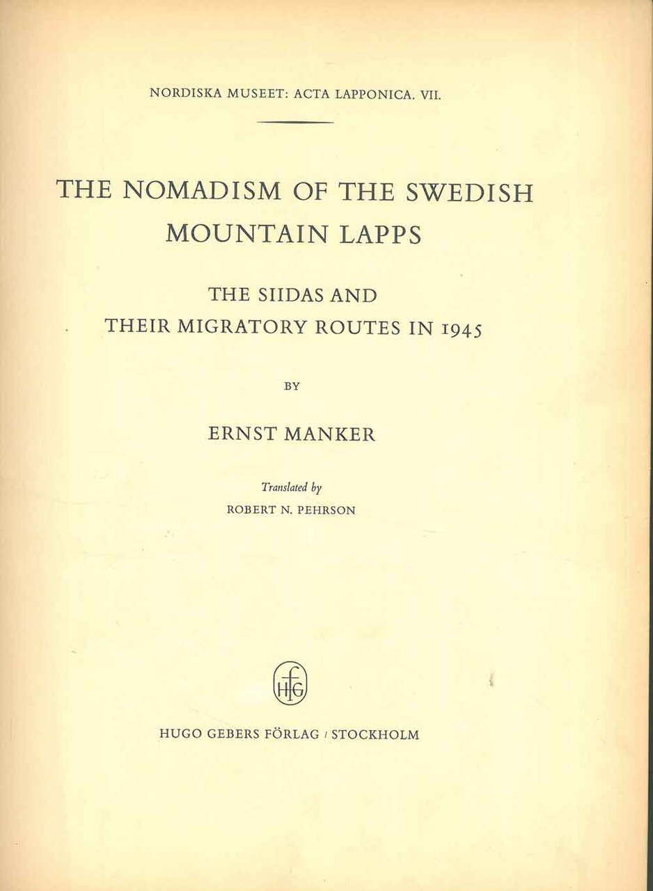 The Nomadism fo the Swedish Mountain Lapps. The Siidas and their migratory routes in 1945. Nordiska Museet: Acta Lapponica VII