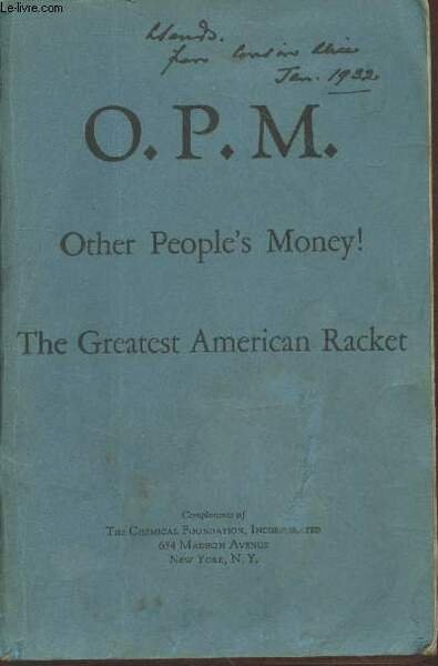 The O.P.M. Other People's MOney ! The Greatest American Racket : The Rescue of Germany - As noble Lenders