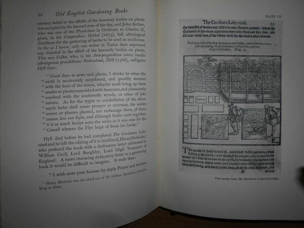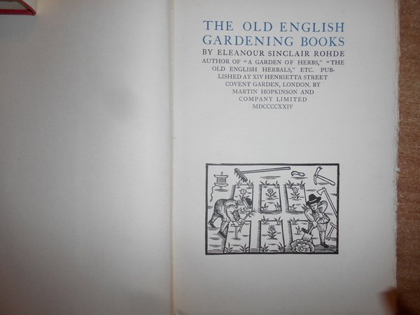 ELEANOUR SINCLAIR ROHDE. London, at The Chiswick Press of Charles Whittingham & Griggs, s.d. (1924). The Old English Gardening Books (The New Aldine Library V). In-8°, m. tela con titolo al dorso e sul piano anteriore con sovracopertina. xii, 144 pp. con XVI tavole f.t. e 8 tavole n.t. Ottimo esemplare in edizione originale con barbe, sovracopertina leggermente usurata. Uff. B - II - 1