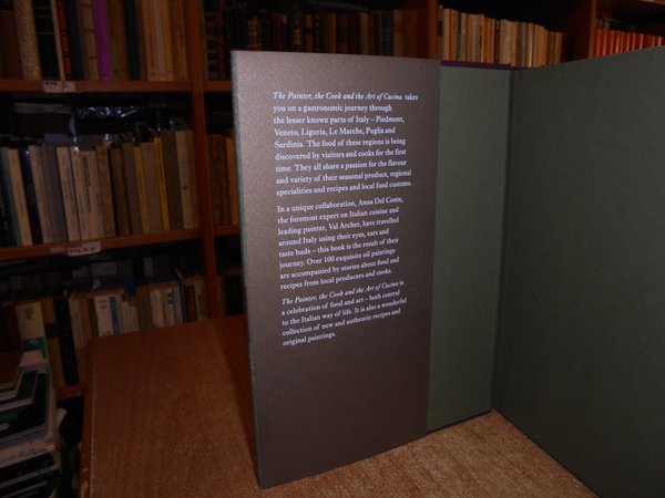 Del Conte Anna & Val Archer. London, Conran Octopus, 2007. The Painter, the Cook, and the Art of Cucina. In-8° grande, cartonato edit. con titolo in argento al dorso, sovracopertina ill. a col. 256 pp. con numerose illustrazioni a colori anche a piena pagina di Val Archer. In ottimo stato di conservazione. Uff. stanzetta mob. sinistra III - 5 carc.