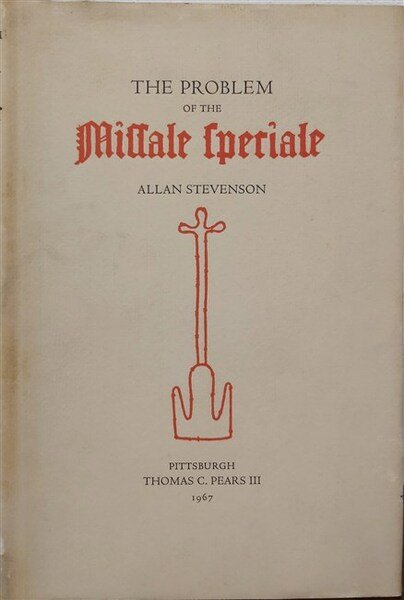 in-8, pp. XXI, 400, leg. t. tela edit. con sovracop. Con alcune tavv. f.t. Saggio sul cosidetto Missale Speciale di Costanza, forse precedente alla Bibbia di Gutenberg. Ediz. a tiratura limitata di sole 150 copie, firmata dall’A. al colophon.