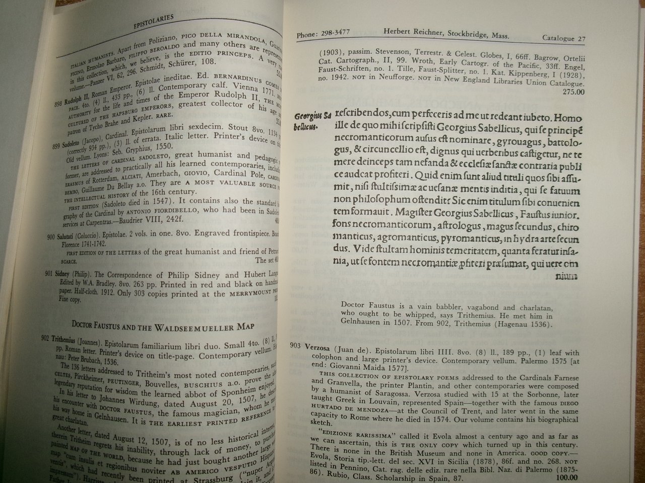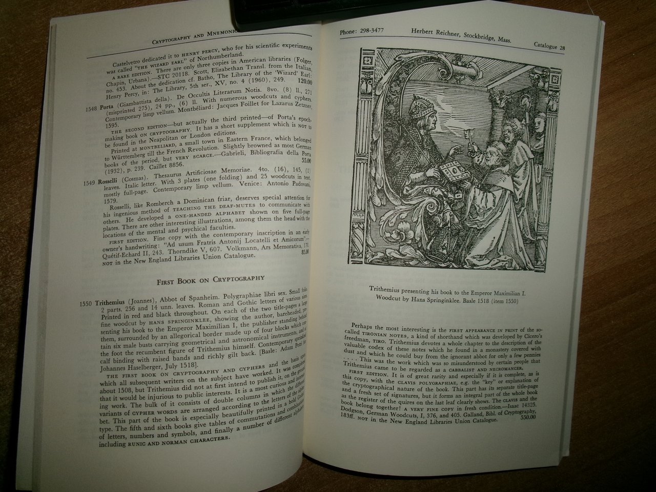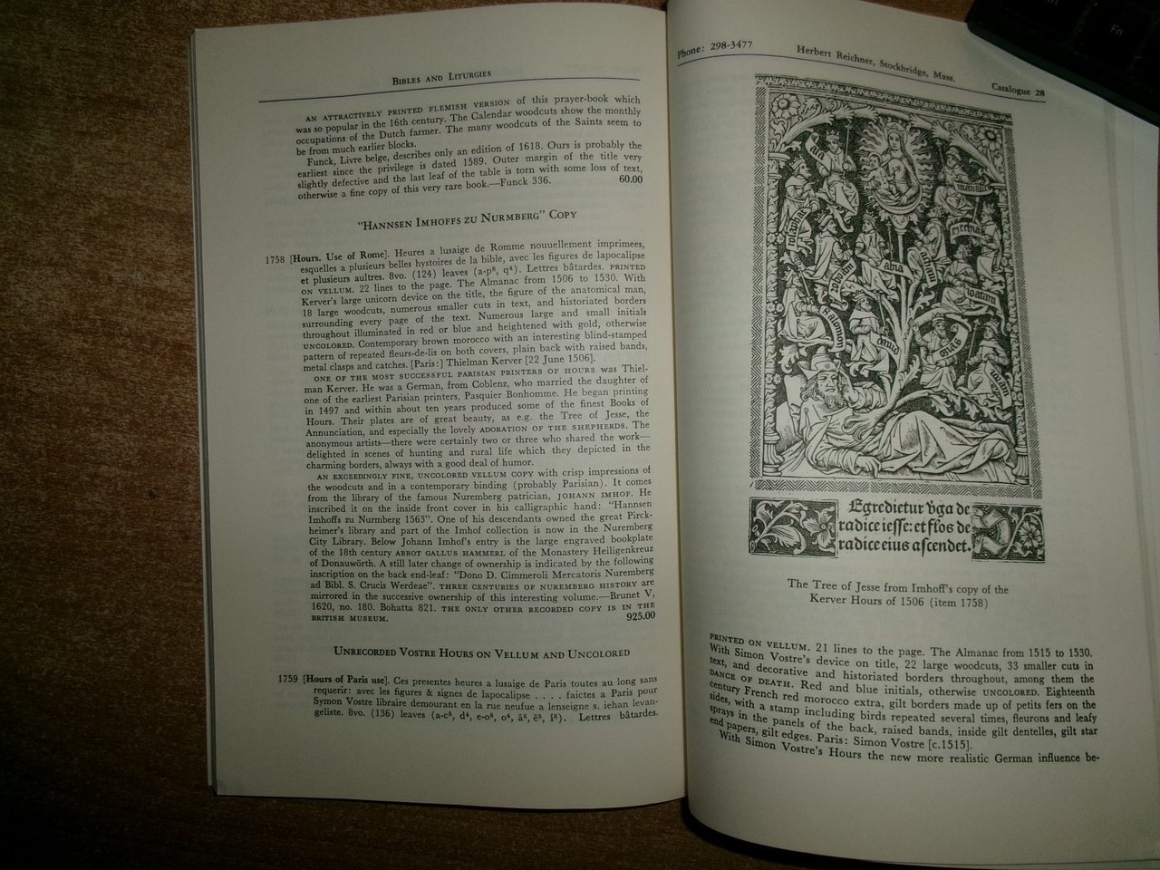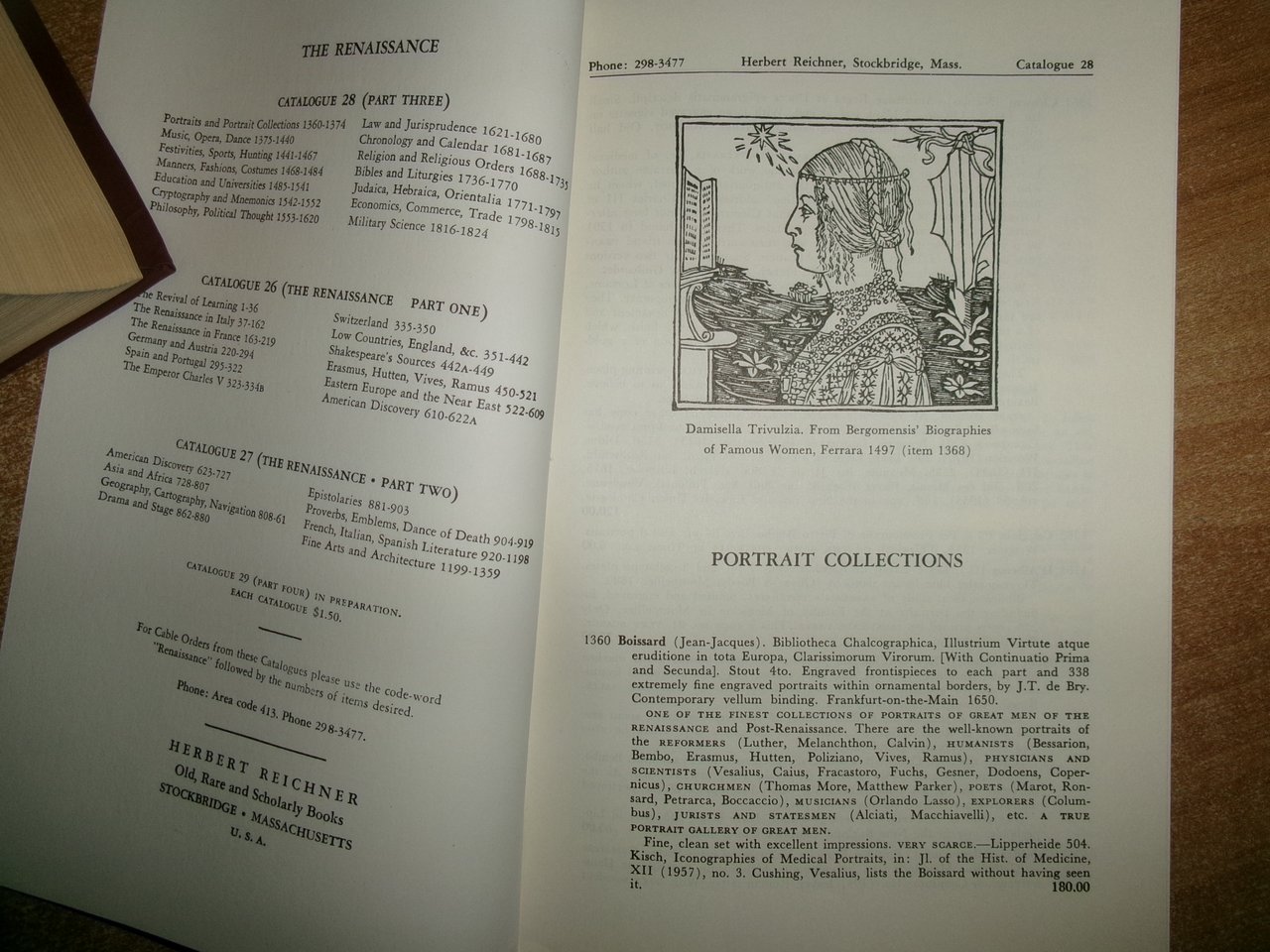 Herbert Reichner. USA, Stockbridge. Massachusetts, (1960). 3 cataloghi in-8°, br. pagine non numerate con accurata descrizione di numerosi libri antichi e riproduzioni di frontespizi. Ottimo stato. Neg. mob. 18 entro busta trasp.