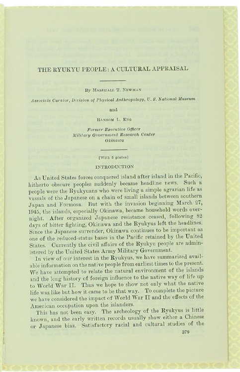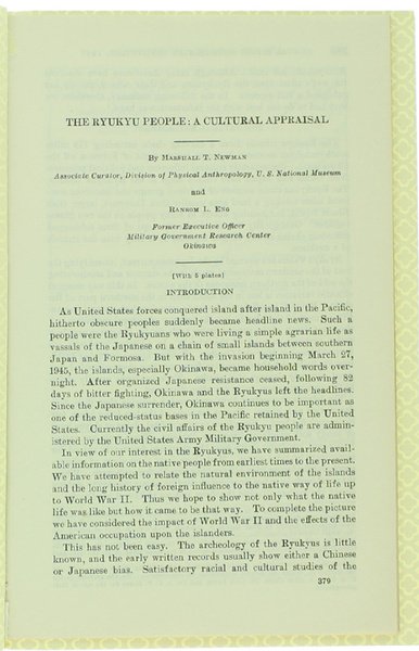 THE RYUKYU PEOPLE: A CULTURAL APPRAISAL. | Libri antichi e moderni | Newman Marschall T., Eng Ransom L.