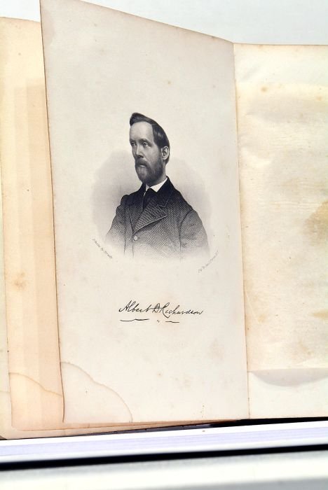 Fort in-8. 512pp. Pleine basane, dos à nerfs (Reliure de l'époque usagée. Manque le plat inférieur, plat supérieur dérelié). Petites mouillures angulaires. Rousseurs éparses. Ouvrage sur la Guerre de Sécession. Illustré d'un portrait de l'auteur. Envoi autographe de l'auteur. Civil War. America. United States. Esclavage.