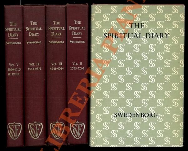 USA-London, The Swedenborg Society, 1971-1977, cinque volumi in-8° tutta tela editoriale con titoli in oro al dorso, pp. XII-448 + 492 + 448 + 494 + 393 (così opera completa). Presente la sovraccoperta del solo vol. I (London, 1977), gli altri (USA, 1971) ne sono privi. In ottimo stato di conservazione.