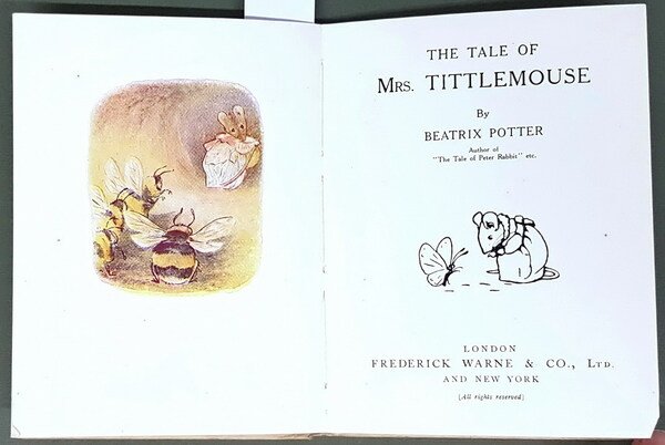 Edizione: collana: the peter rabbit books by beatrix potter - original edition 1910 - book in -16 pic. (10.5 x 14.5 cm.), editorial hardcover binding col. cream with illustr. in color and titles in red on the front plate, text in english, p. 59, (1) with splendid illust. in color full page. in good condition.