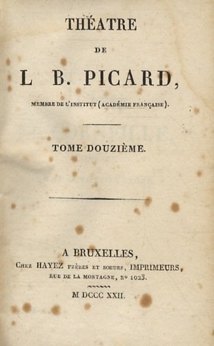 A Bruxelles, chez Hayes Frères et Soeurs, 1822, in-16, leg. della fine dell'Ottocento in mezza pelle, titolo e filetti in oro, pp. 387, [1]. Segnaliamo i titoli: La fête de Corneille; La Saint Jean; Les charlatans et les compères.