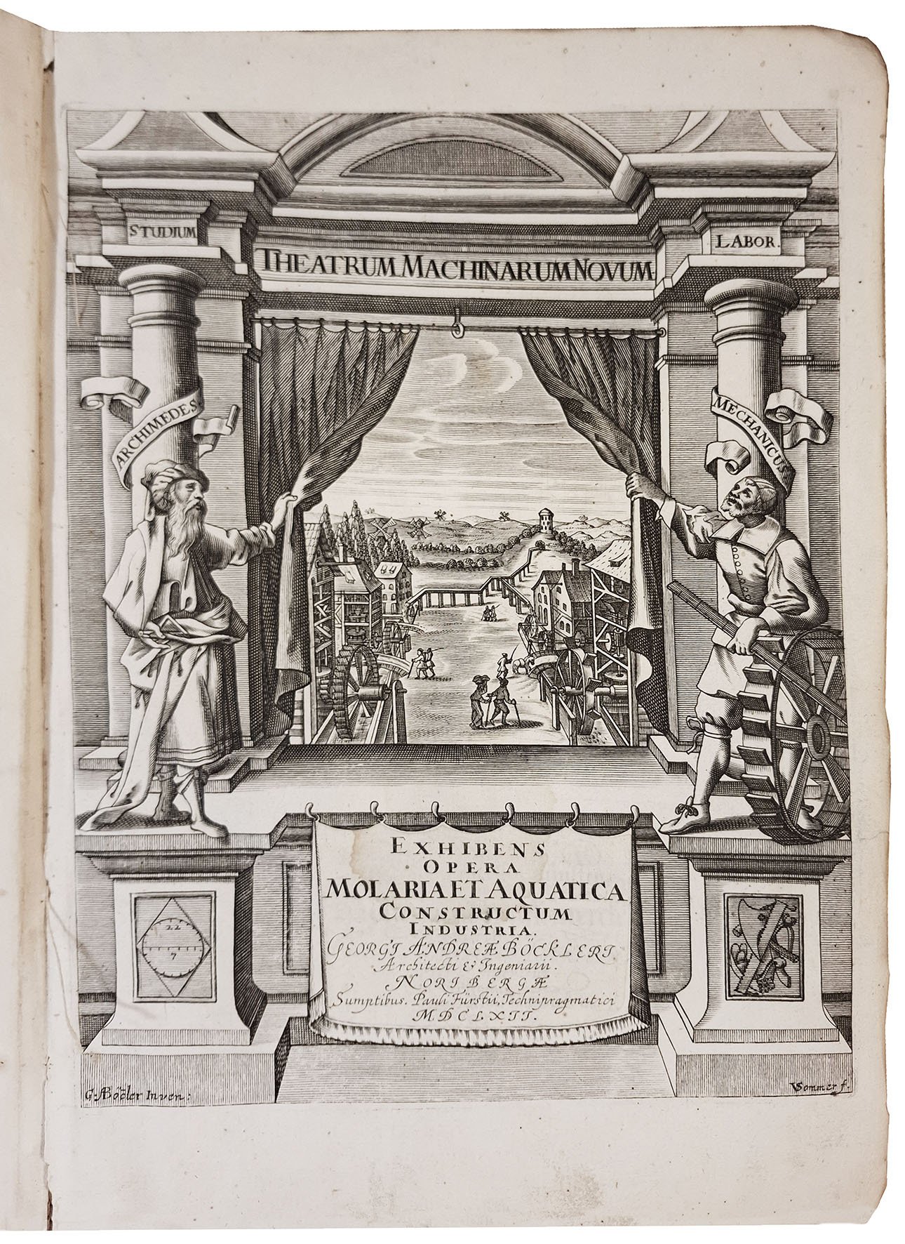 First Latin edition, in the translation by Heinrich Schmitz, of one of the most accomplished and successful 17th-century machine books. It first appeared in German at Nuremberg in 1661. The Latin edition was reprinted in 1686, the German edition in 1673, 1703 and 1705.