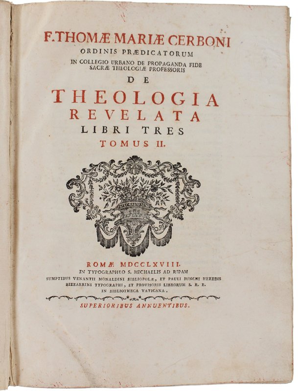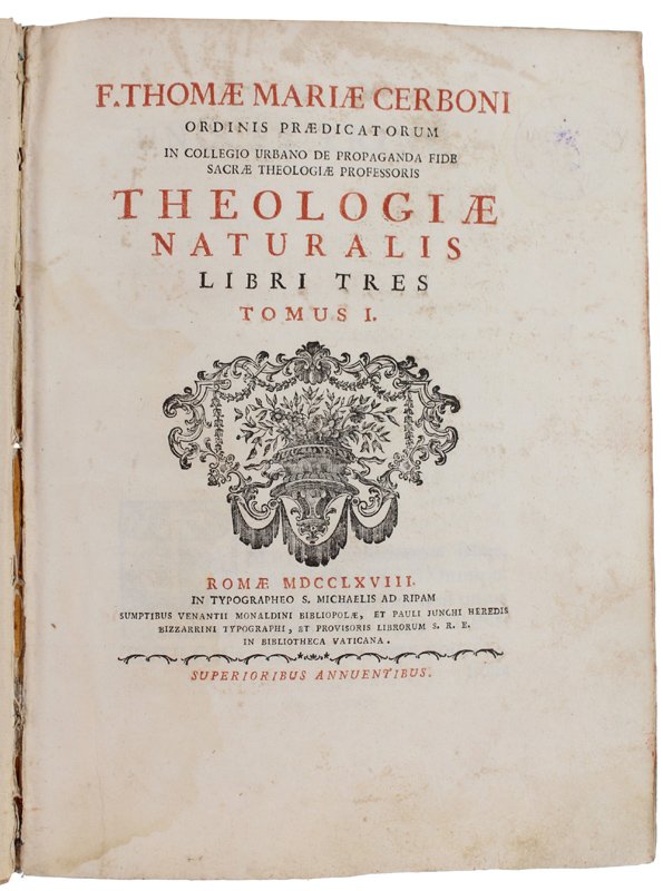 THEOLOGIAE NATURALIS - Libri tres. Tomus I. - Tomus II. [Opera completa] | Libri antichi e moderni | Cerboni Tommaso Maria.